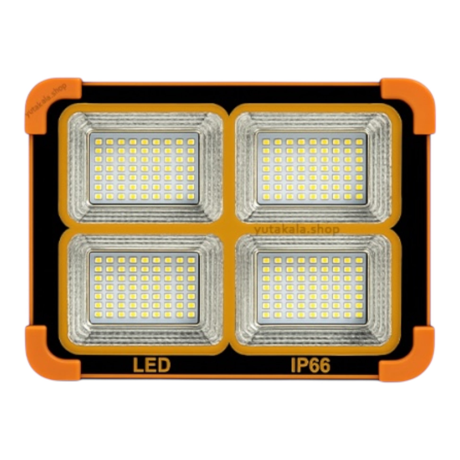 The 150W LED solar projector is a powerful and energy-efficient light source that works without the need for city electricity. This device supplies its energy through the solar panel built into the back of the product, making it a suitable option for environments that do not have access to electricity. The waterproof design with IP66 standard allows it to be used in rainy conditions or humid environments. The durable body and sturdy handle provide easy installation and use in various places such as yards, gardens, farms, parking lots, villas and even camping trips. The presence of 336 high-power LEDs in this projector creates uniform and widespread lighting. Also, the high-capacity internal battery is capable of providing continuous lighting for 7 to 15 hours .