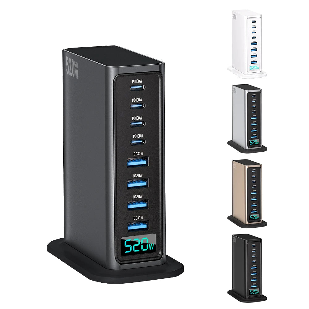 Power up all your devices efficiently with the 520W GAN 8-in-1 Fast Charger. Designed with advanced Gallium Nitride (GAN) technology, this charger offers rapid, stable, and energy-efficient charging for laptops, tablets, and smartphones. The built-in digital display shows real-time power output, ensuring safe and smart charging every time. Compact and travel-friendly, itโs perfect for home, office, or on-the-go use.