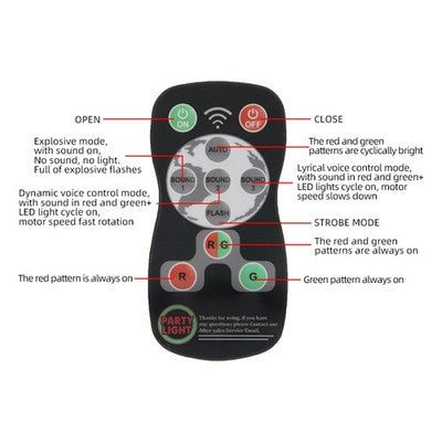 Sound is active, automatic mode and remote control, red and green, automatically play or play music rhythm.