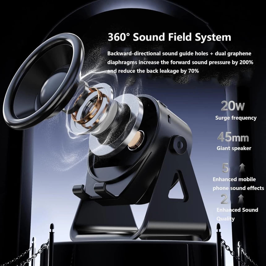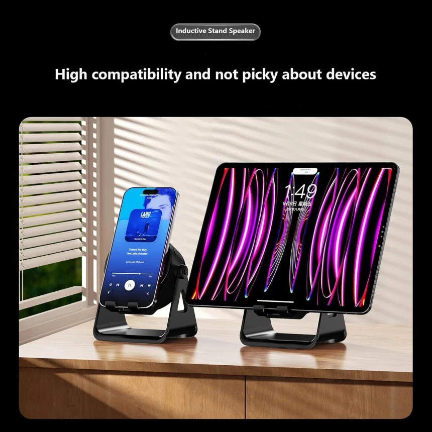 - Multifunctional Device: This 4-in-1 gadget functions as a wireless induction speaker, Bluetooth speaker, adjustable phone stand, and RGB ambient night light.