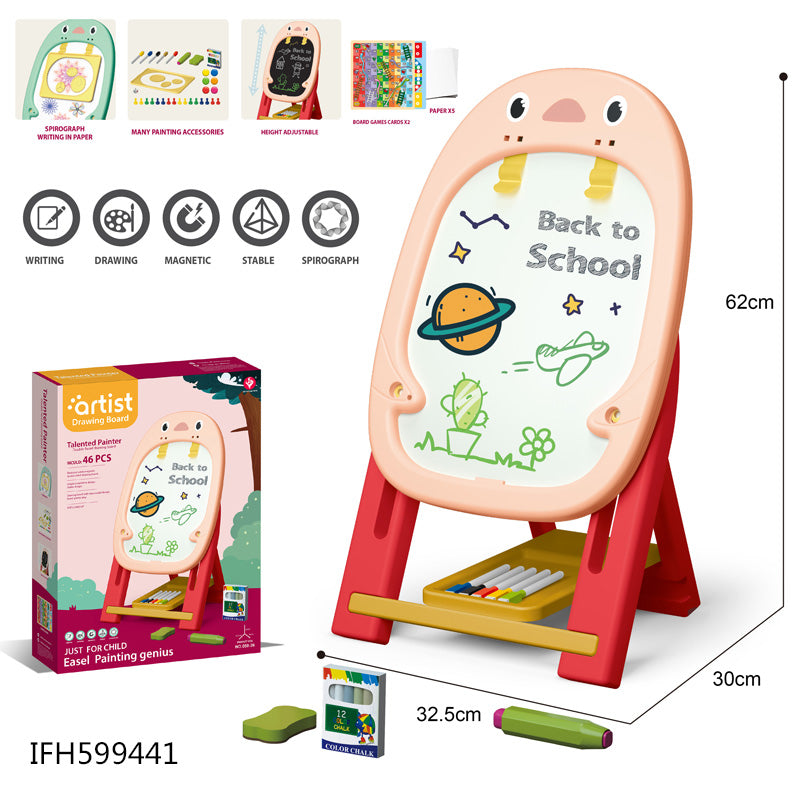 Kids Adjustable Easel Vertical Double-Sided Kids Magnetic Drawing Board With Shelf β 46-Piece Art Set