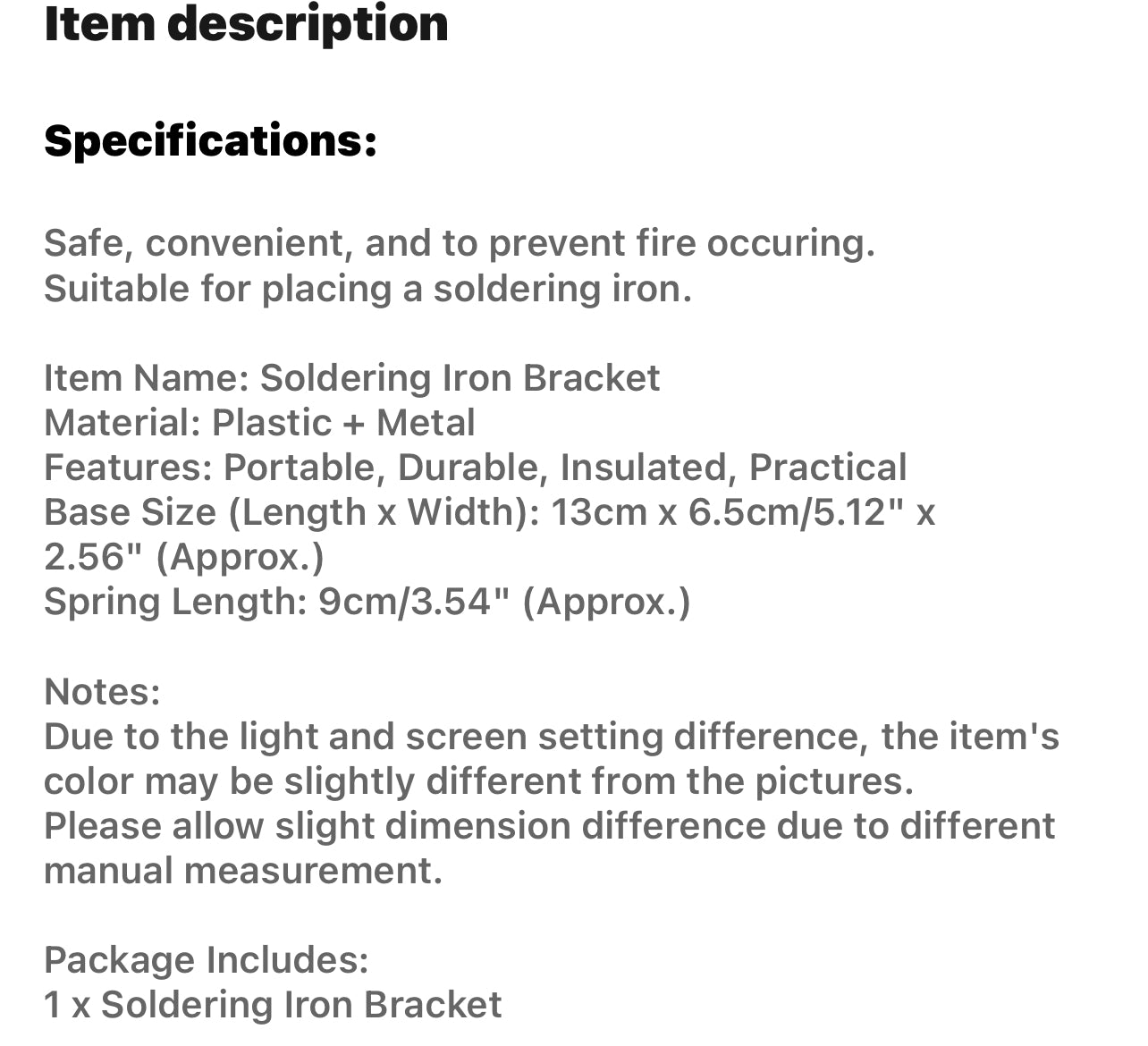 1x soldering iron bracket and base