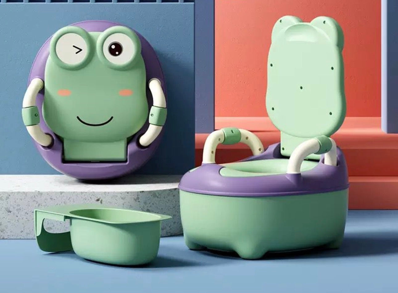 High-strength PP material, environmentally friendly and odorless, ergonomic and user-friendly., Equipped with reversible seat cover, removable trash can, can be easily picked up and cleaned., Soft seats and rounded edges, with high backrests and large seats, give children an unprecedentedly comfortable toilet., With handles, anti-slip system with rubber feet, does not tilt and slip., Suitable for children from about 6 months to 7 years old, very suitable for toilet training in comfort and safety.