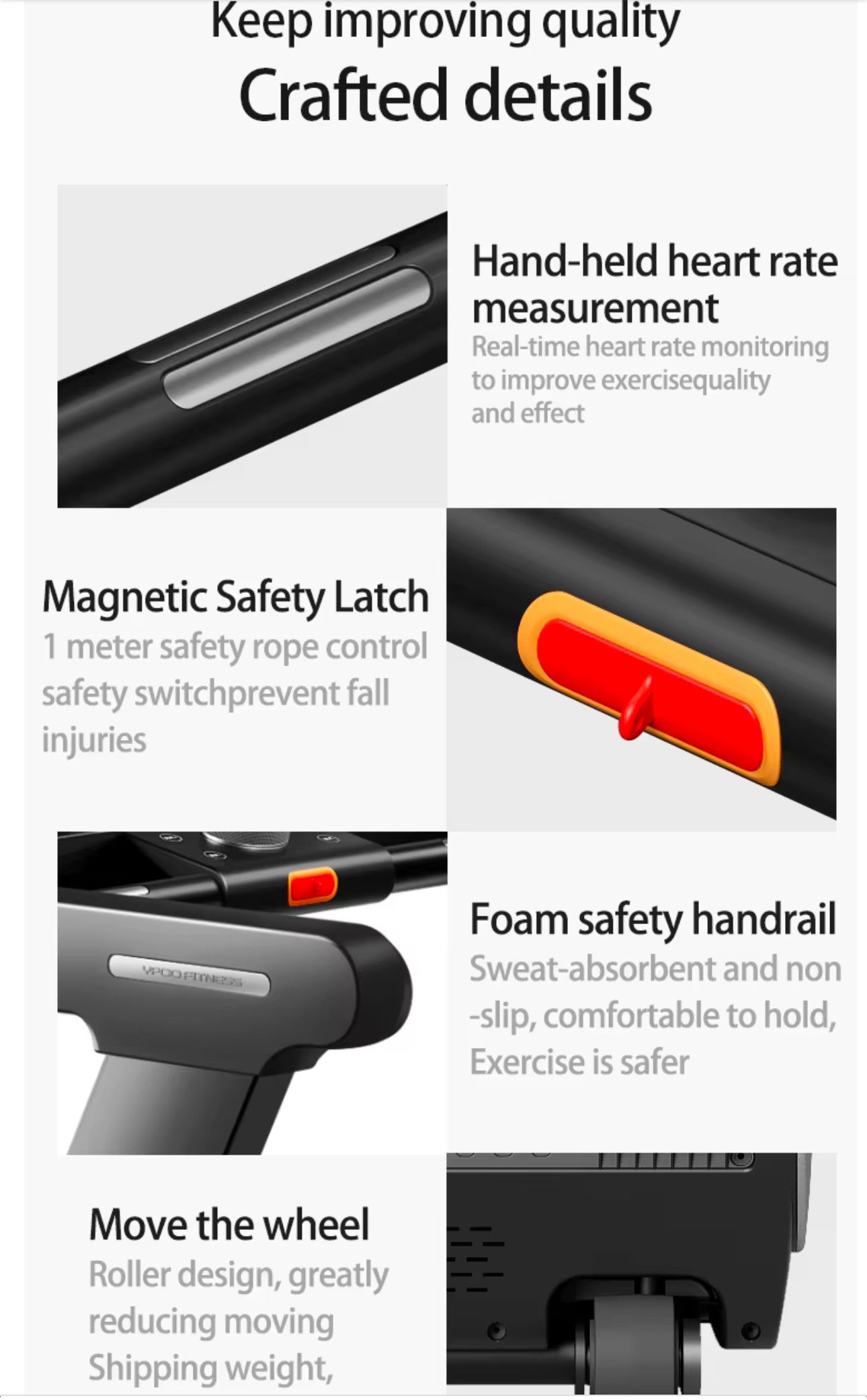 RF-PRO Suspension System: The 20mm double-layer cushioning absorbs impact for a joint-friendly run, while the silent running system keeps your workouts quiet.