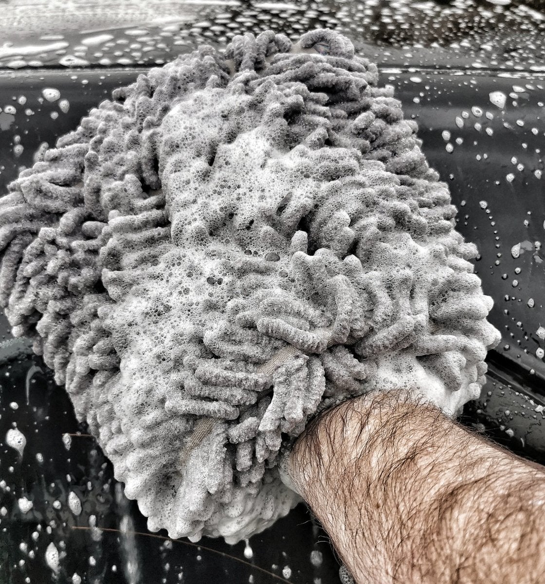 - With plush and absorbent microfiber chenille strands, it is safe to use on any paint finish, as well as glass and metal. This mitt’s construction leaves a lot of room between threads for dirt to migrate. To further reduce the risk of scratching the paint, rinse the mitt frequently as you wash to avoid transferring dirt back to the paint. To get the most mileage out of your mitt, avoid dragging the mitt over emblems with sharp edges. After using the mitt, rinse it out and hang to dry. The Microfiber Chenille Wash Mitt has an elastic cuff, cloth loop to hang it and two sides of fluffy chenille.