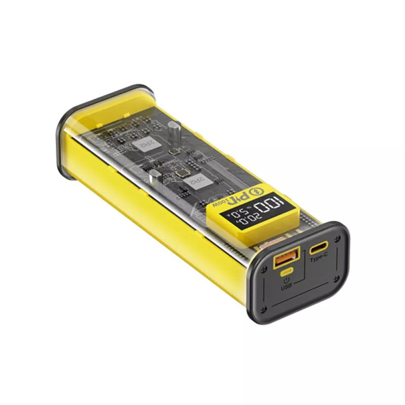 Transparency as a hot tech trend may be new, but itโs been used in the watch industry extensively to captivate audiences. The trick, however, is to structure your product on the inside to look immersive and hypnotic โ something watches already have going for them. Itโs also been dabbled with by Apple and their colorful iMacs, and with the Nintendo GBA, but transparent electronics took a hiatus until Carl Peiโs Nothing brand was founded. Here to bring transparency back is also Shargeekโs STORM2 Slim, a slick, powerful power bank that comes with a transparent housing, an IPS display that lets you toggle through the power bankโs dashboard and features, and even a supplemental set of solar panels for charging your power bank on the go. Armed with a USB-A and USB-C port that can both be used as outputs, the STORM2 Slim lets you charge a whole variety of devicesโฆ even your laptop