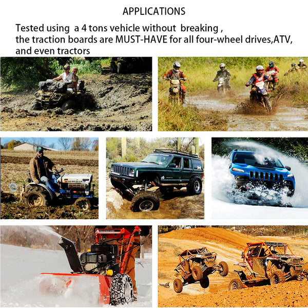 - 10-Ton Load Capacity: With a maximum load capacity of up to 10 tons (22,046 lbs), the traction boards can support various vehicles, including SUVs, RVs, cars, and trucks. Even large vehicles can be quickly rescued with this board.