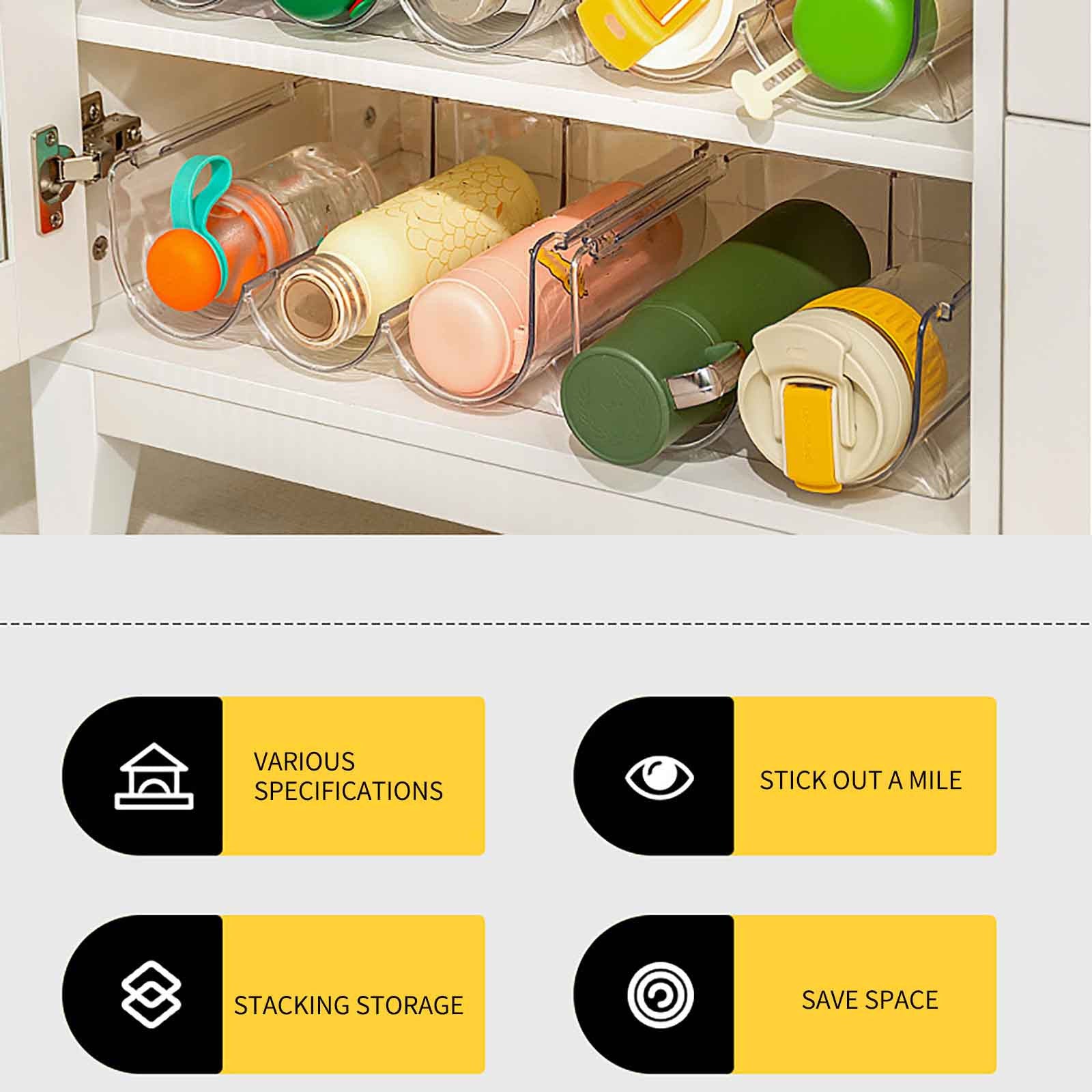 Keep your space neat and stylish with the MHome Transparent Stackable Water Bottle, Cup & Wine Storage Rack. Designed to hold up to 3 bottles per layer, this versatile organizer is perfect for water bottles, tumblers, insulated cups, and even wine or beverage bottles.