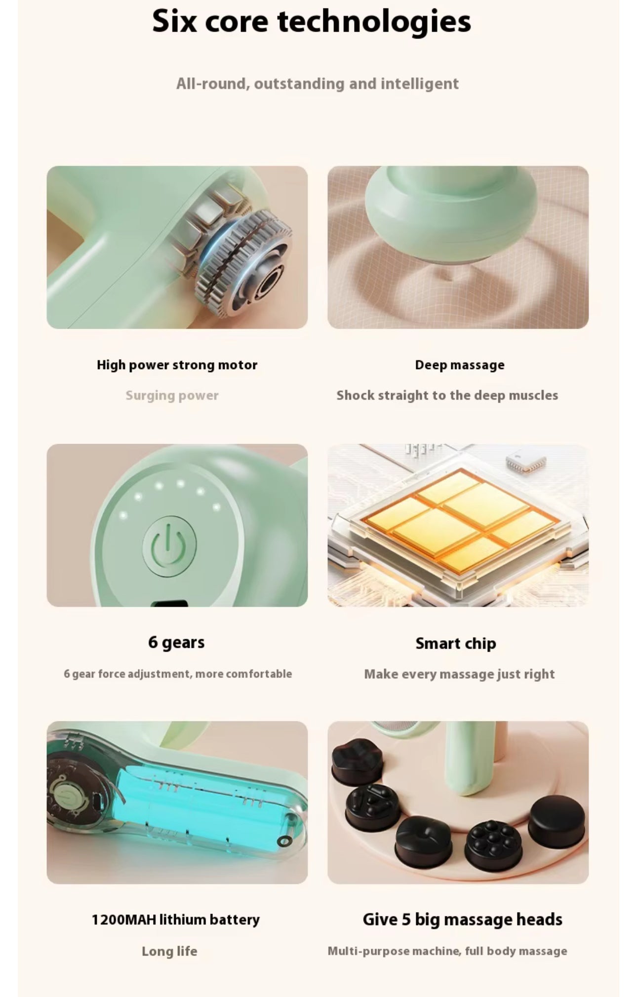 Handheld body sculpting machine will help you shape and tone your body,help you lose weight.• Cellulite massager offers 6 levels of vibration and strength, allowing you to customize your workout to your specific needs and preferences. >1-2 levels: Gentle, relieve muscle stiffness >3-4 levels: Gentle, relieve lactic acid buildup >5-6 levels: Gentle, improve muscle soreness and discomfort• Relax Muscles: Handheld cellulite massager helps to burn fat, improve blood circulation, relieve muscle soreness and deeply relax your body ,promotes overall health and fitness.• 5 type Massage Heads:For all parts of the body ,surface design, will not scratch the skin. >Smooth massage head: Deep and intensive massage, suitable for full body relaxation and slimming >Ball Massage Head
