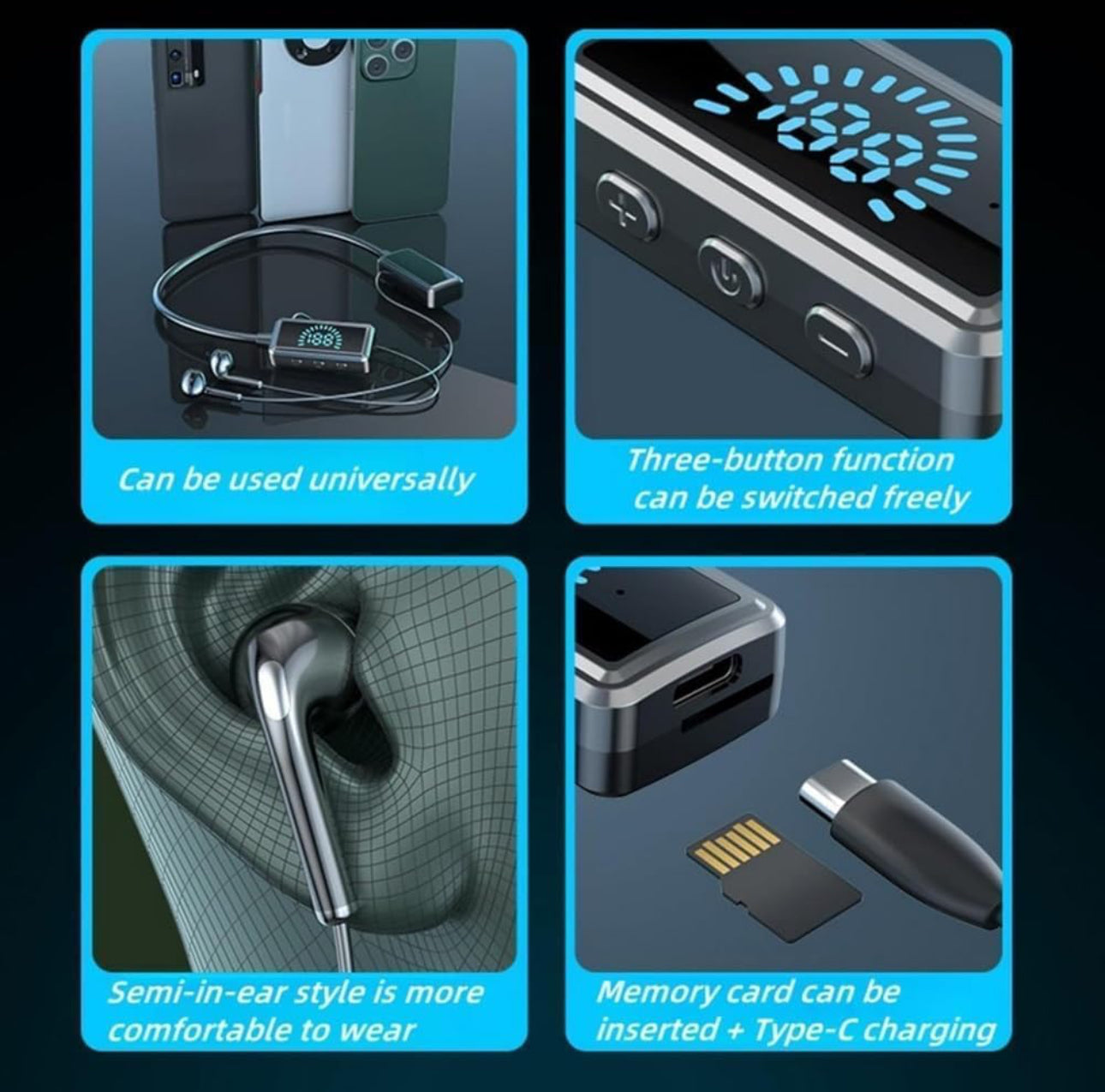Wireless Sound Card Live Streaming Earphones, Wireless Sound Card Live Broadcasting and Audio Editing Earphones, New Waterproof Bluetooth Wireless Headset, Neckband Headphones with Display (Black)