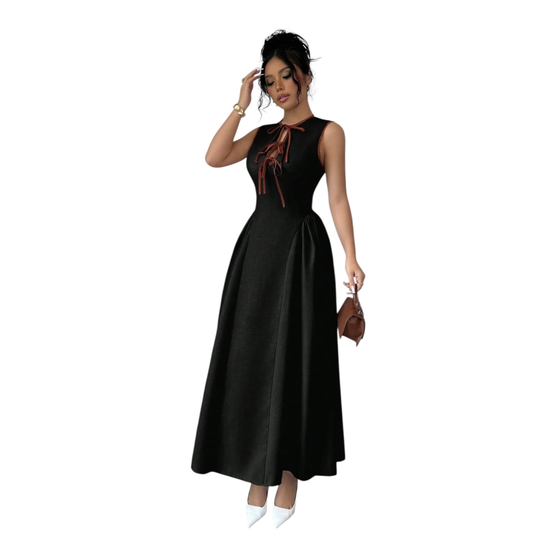 Elegant and sophisticated design - Long sleeveless dress with decorative bow at the collar, ideal for a refined and feminine look.