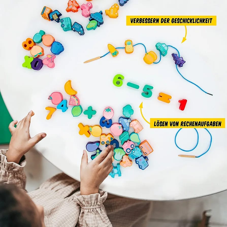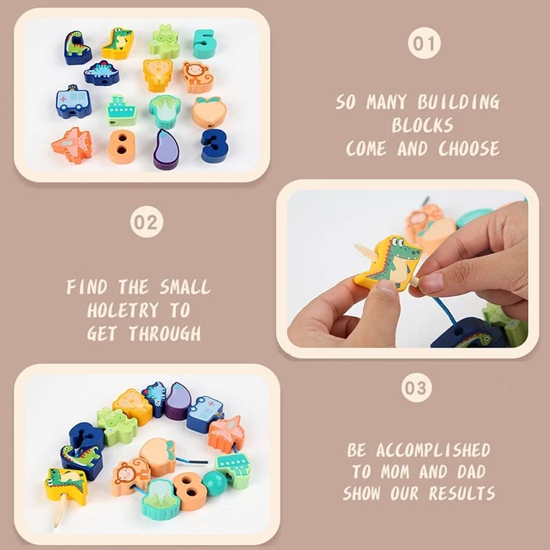 - 100% Brand new, handcrafted and Best - Preschool Toys Wooden Threading Beads Block Toy Kids Early Learning Toys